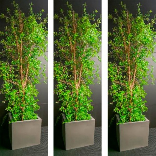 Größe: 2,20m Gefäß: Kubus Maße Gefäß: 40B x 40T x 46H cm Verfügbarkeit: Ganzjährig Blütezeit: unscheinbare Blüte in rot | |||